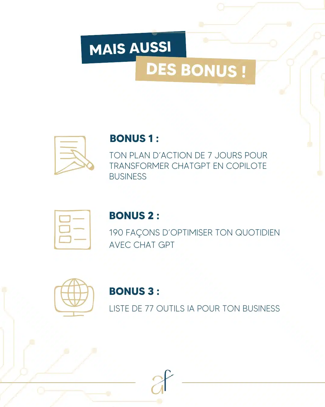 En Bonus tu auras d’ailleurs accès à 190 idées pour optimiser ton quotidien avec ChatGPT.