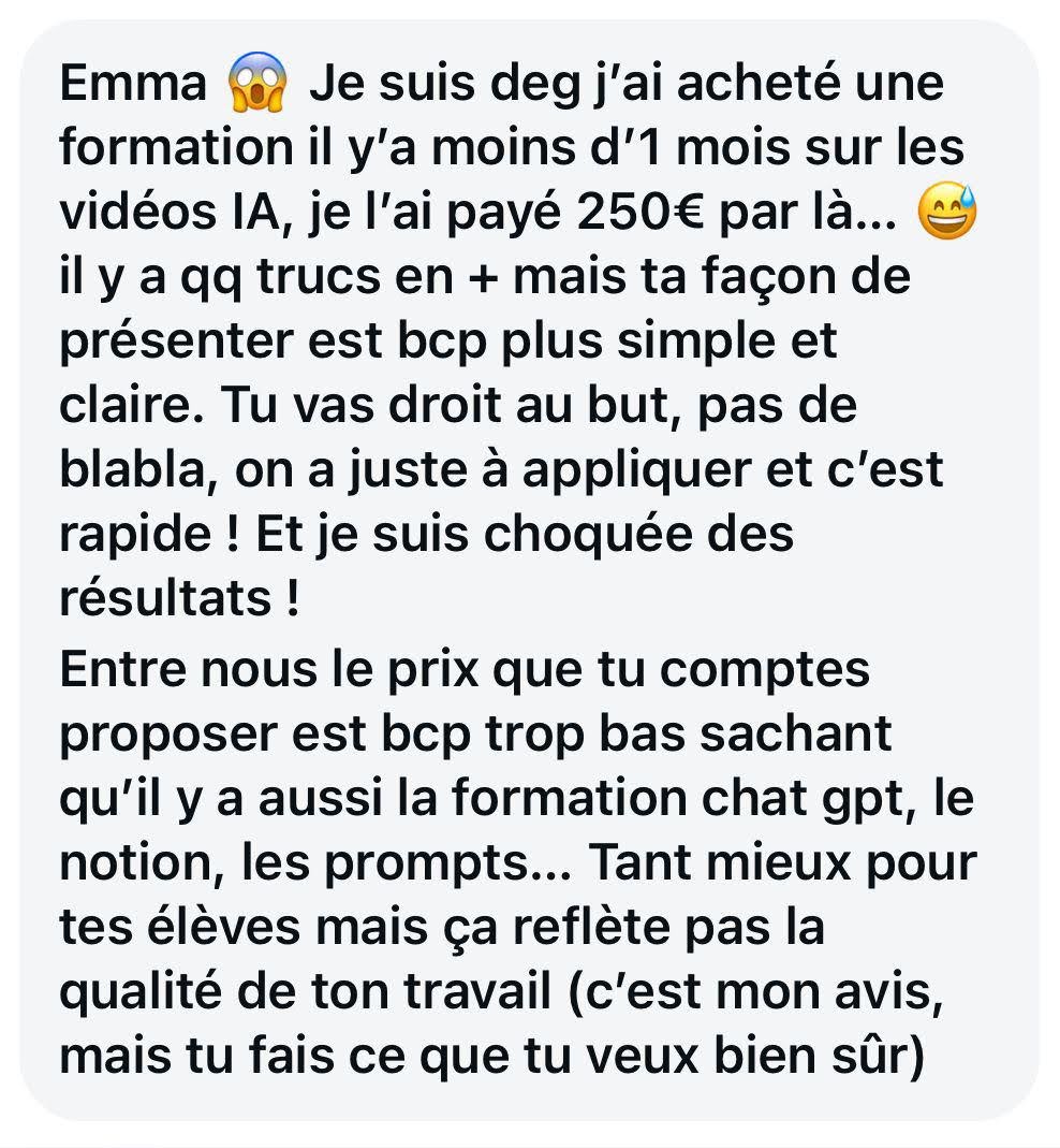 Vraiment à ce tarif c’est cadeau, j’ai vu passer des formations plus chères et qui n’abordent pas tous ces aspects de l’IA !