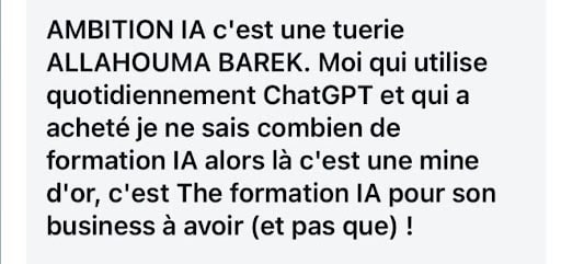 En résumé : IA Ambition t’apprend à utiliser ChatGPT intelligemment, que ce soit pour ta vie perso ou ton futur business.